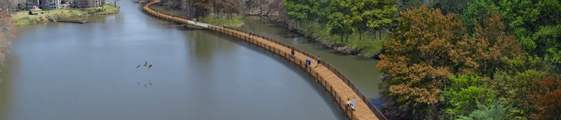 Scenic phase of Sandy Springs Springway Trail includes sweeping boardwalk