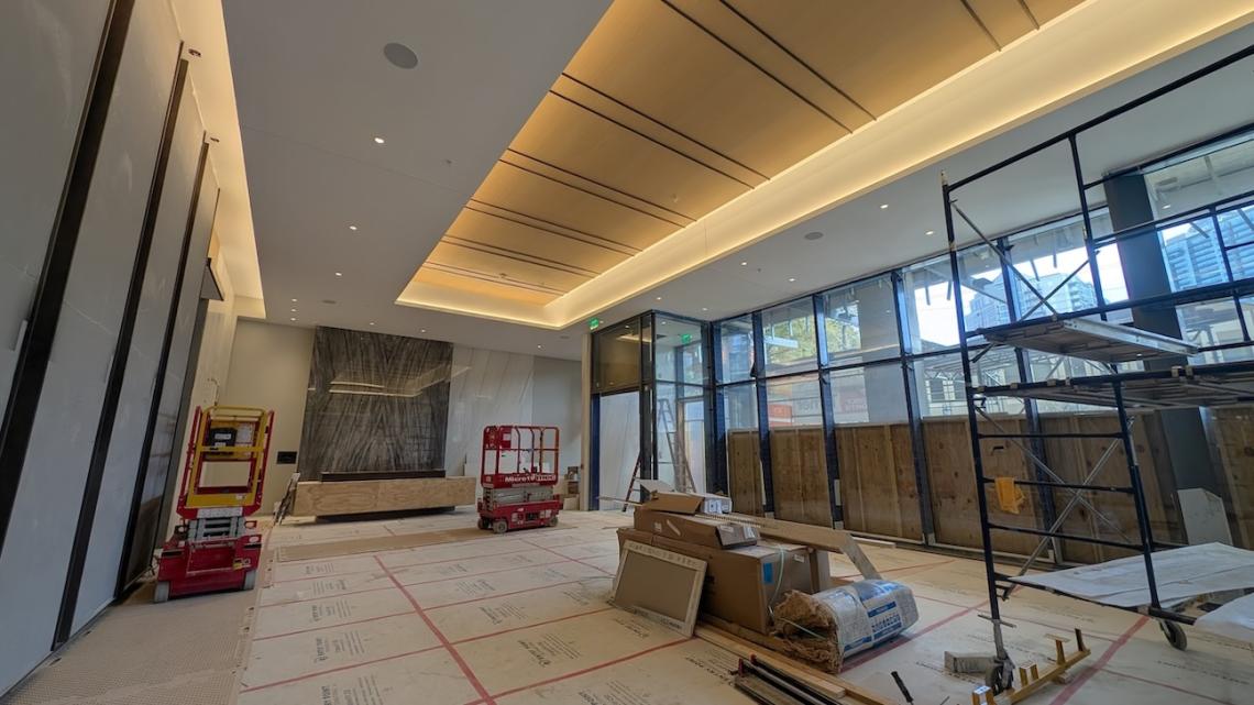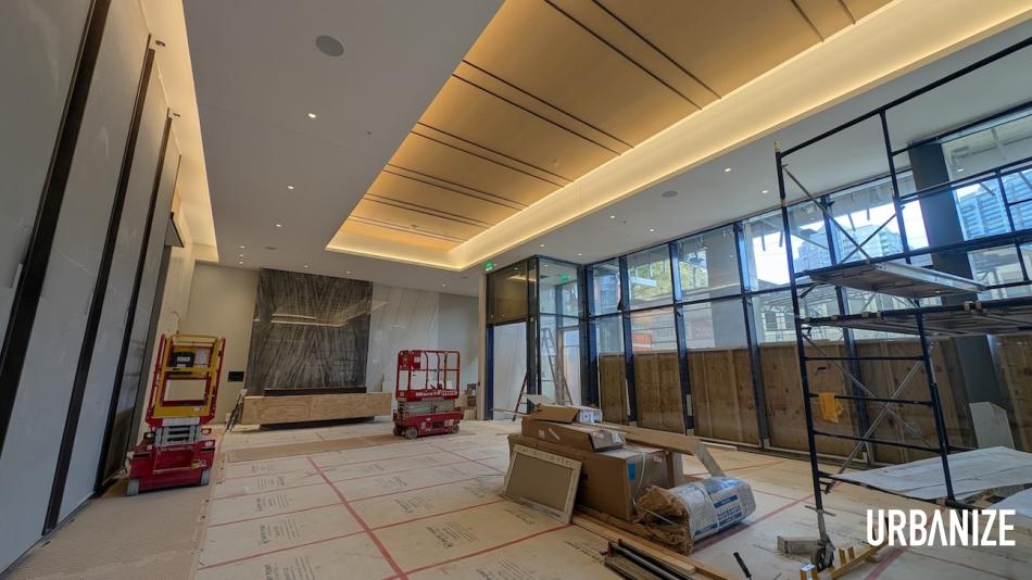 Sneak peek of the under-construction 1072 West Peachtree lobby off West Peachtree Street. Josh Green/Urbanize Atlanta
