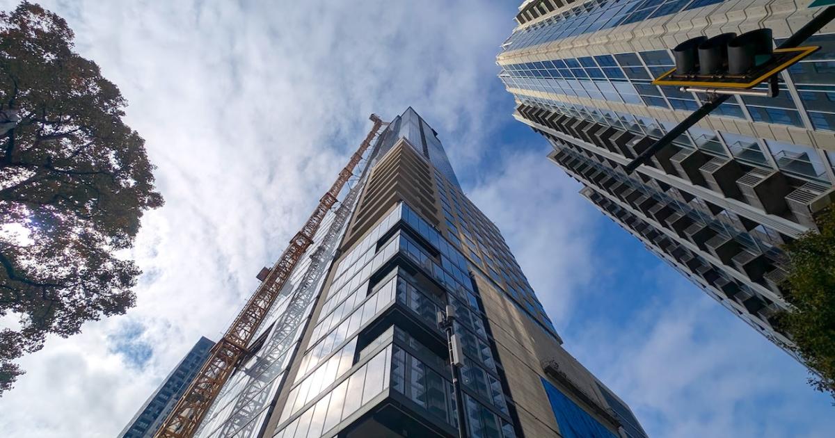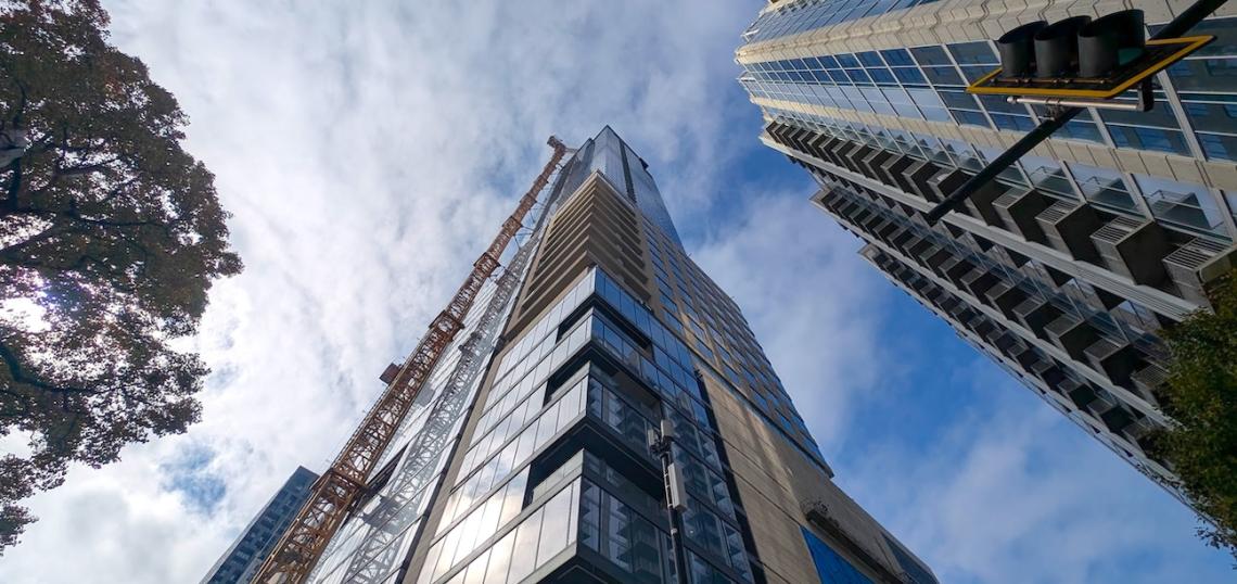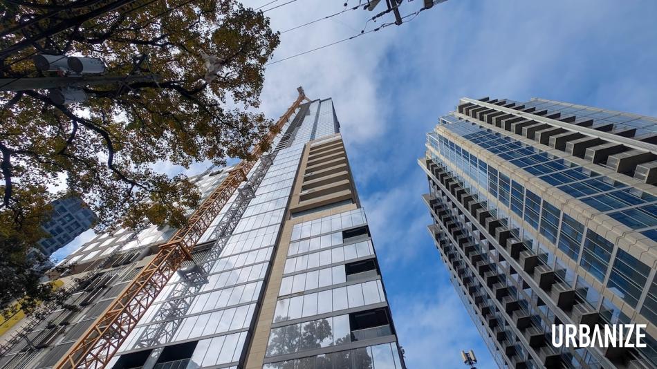 The building's facade over West Peachtree, facing east. Josh Green/Urbanize Atlanta