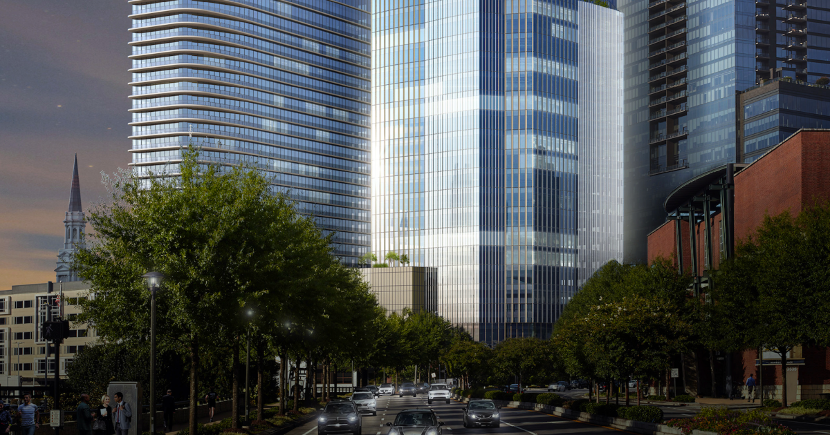 Charlotte-based national developer Crescent Communities has revealed fresh renderings and details for a mix of Class A offices and apartments coined “3600 Peachtree”—plans that first came to light in recent filings with Buckhead development review boards.