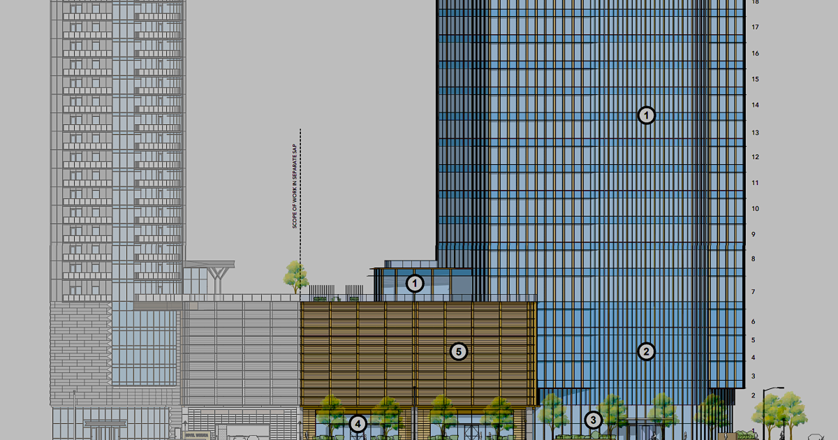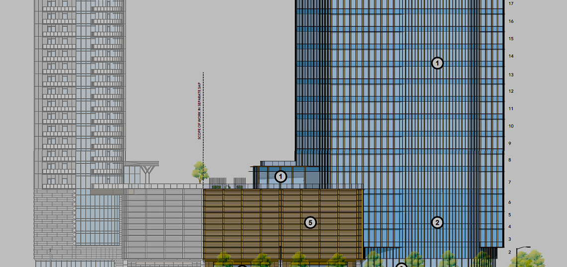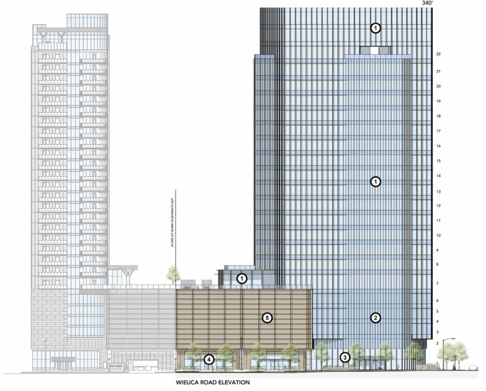 According to a Special Administrative Permit application filed with the City of Atlanta Office of Zoning and Development in December, the Buckhead office tower would rise a few feet taller (340 feet) but count fewer stories (22 total) than its apartment sibling.
