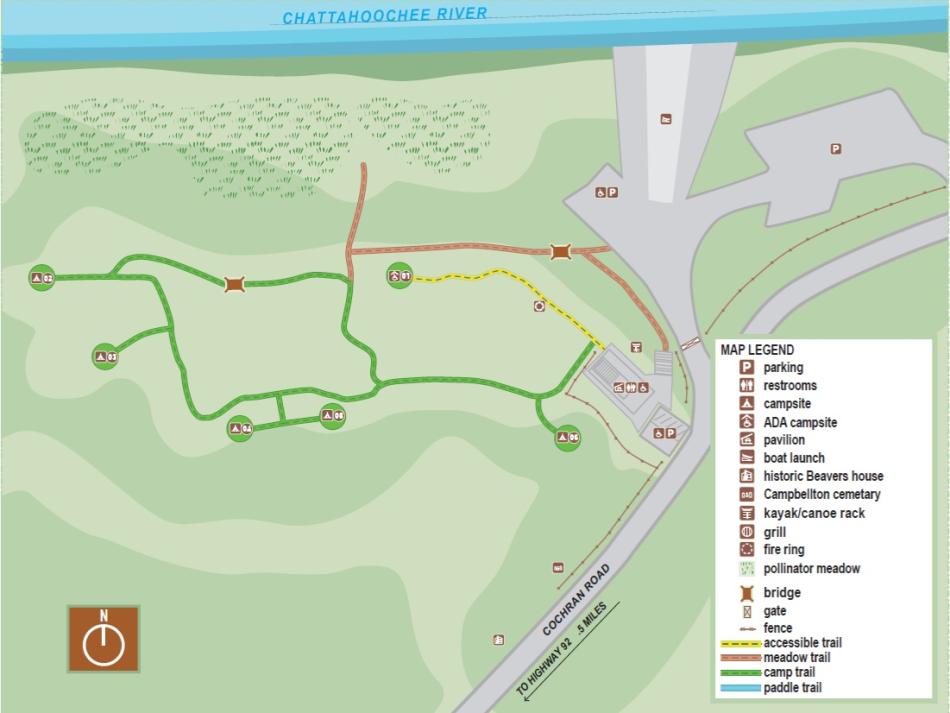 Earlier improvements at Campbellton Park included a $200,000 boat ramp funded by DNR’s Wildlife Resources Division five years ago. That was followed by more than $1.3 million in capital improvements led by Chattahoochee Hills and TPL officials to build trails, ADA-accessible campsites, restrooms and showers, a communal gathering space, and ecological restoration areas, per officials.