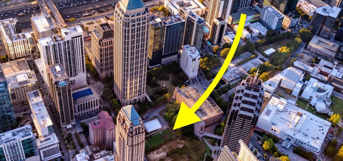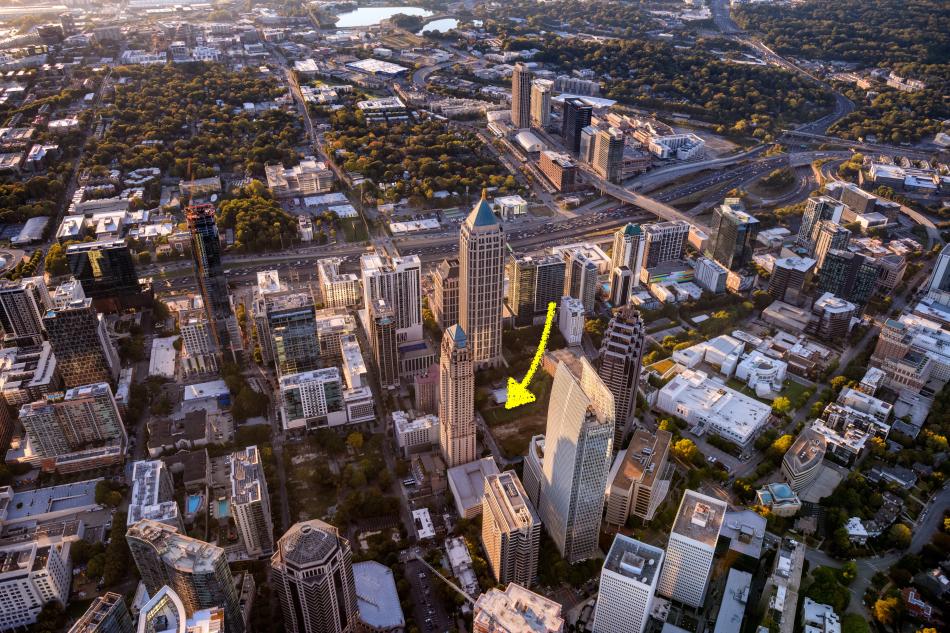 How the 4 acres in question are slotted among some of Atlanta's tallest, most recognizable buildings and cultural landmarks such as the High Museum. Courtesy of Midtown Alliance