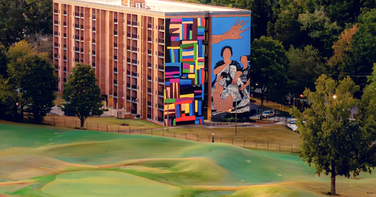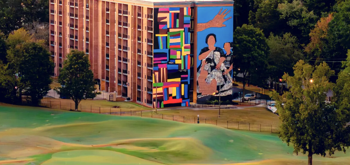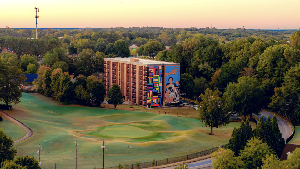 Veteran Atlanta affordable housing developer Columbia Residential has recently completed a towering public mural at the renovated Legacy at East Lake property, an eight-story senior housing community at 380 Eva Davis Way SE. The $35-million project updated and preserved 149 affordable apartments for residents ages 55 and over, per Columbia reps.