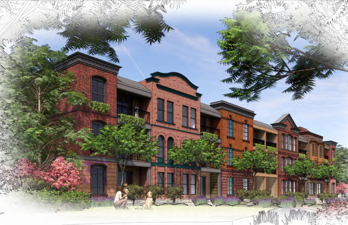 Facades planned for a condo section of the Morris Road site. McKinley Homes; designs, Smallwood, Reynolds, Stewart, Stewart & Associates