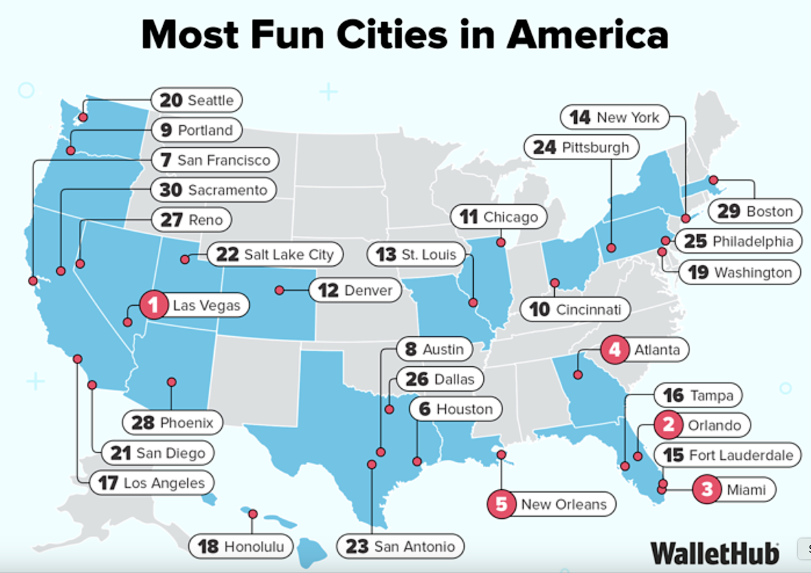 Their Top 30 rundown of most fun American cities right now looks like this: