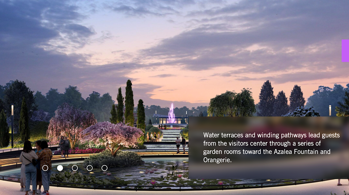 “… a series of immersive experiences will be organized along a central Grand Axis, providing a strong linear sightline through the center of the expansion site, with dramatic views between garden rooms.