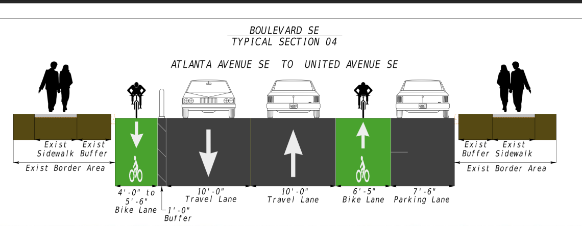 An example of how Boulevard will be sectioned for new uses along Grant Park near Zoo Atlanta. Courtesy of ATLDOT