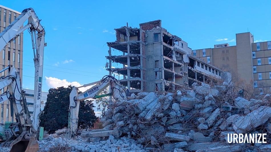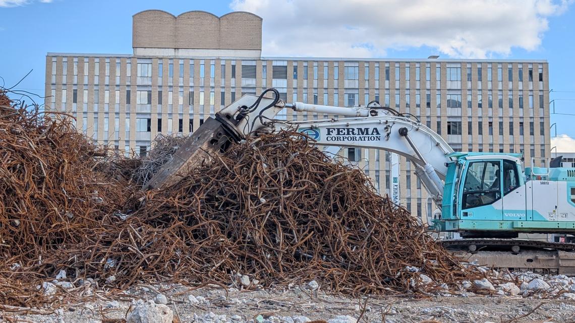 Aided by one of the largest long-reach excavators in the world, demo efforts are chewing away several thousand square feet of space per day at the former AMC site, while preserving the 1920s facades of what was once known as Georgia Baptist Hospital, as development partners with Shelton McNally recently told WSB-TV.