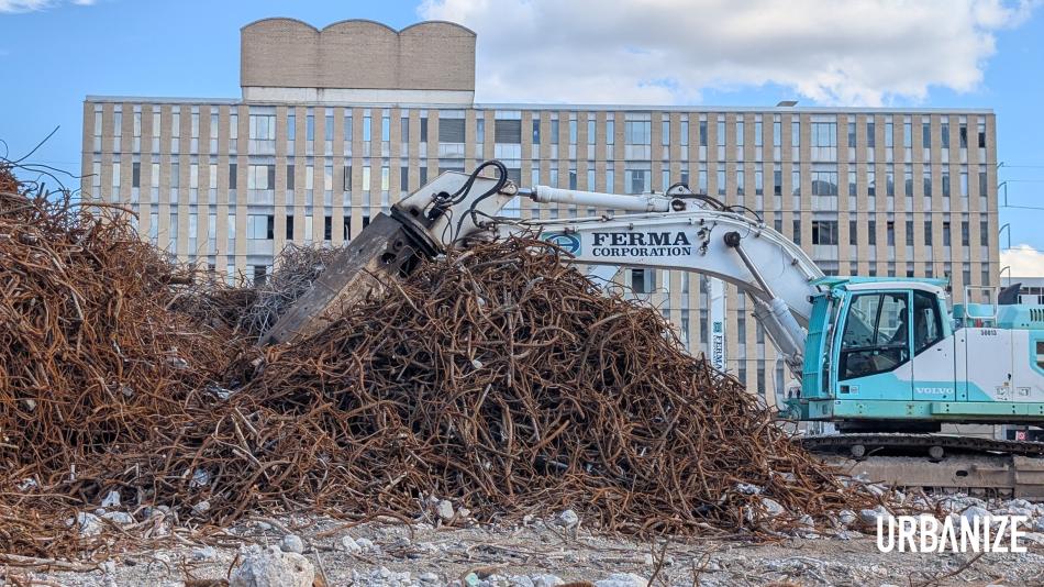 Mounds of rebar where the AMC parking garage along Ralph McGill Boulevard once stood. Josh Green/Urbanize Atlanta