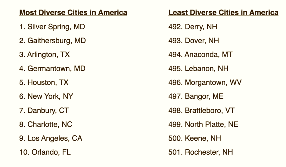 Here's a snapshot of the top and bottom of WalletHub's latest Most Diverse Cities in the U.S. rank: