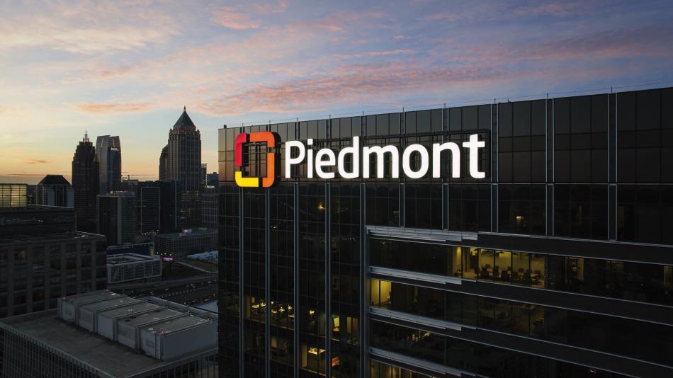 As the building’s anchor tenant, Piedmont has placed its logo atop the building, overlooking the downtown Connector. Other exterior changes include lighting meant to make the building stand out at night to Connector commuters.