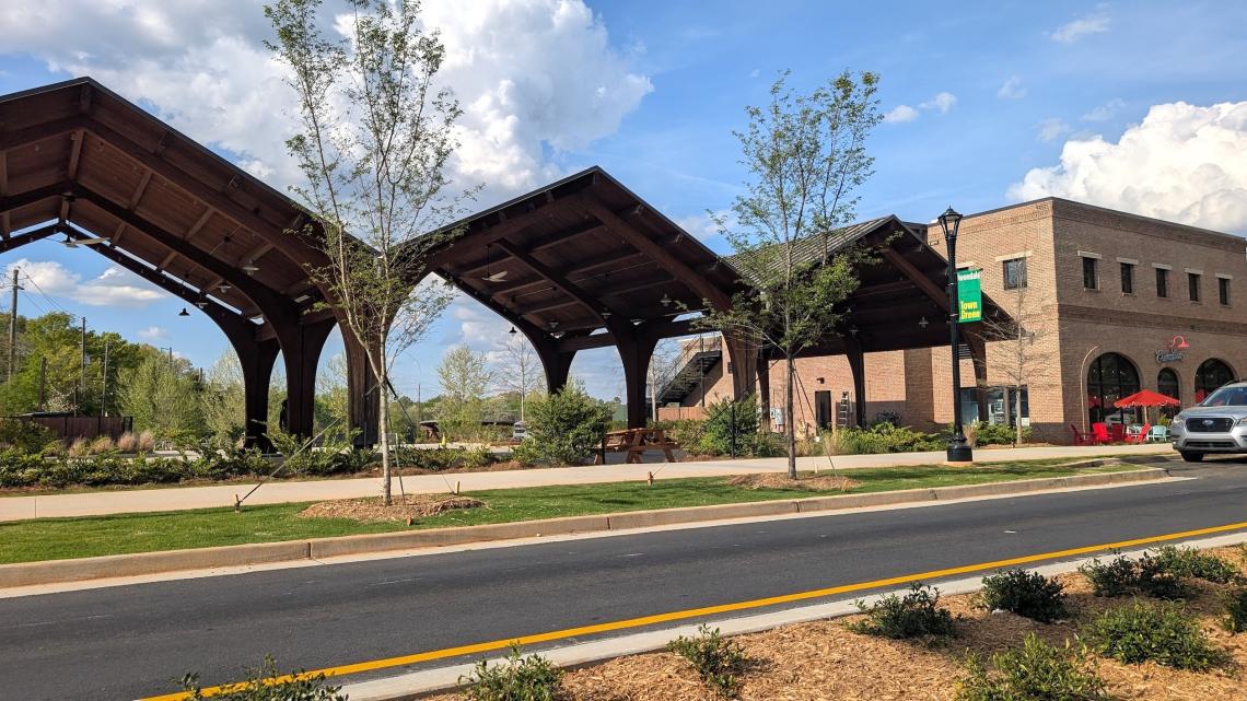 How the Complete Street project passes Avondale Estates' Town Green and new The Dale commercial village. Urbanize Atlanta