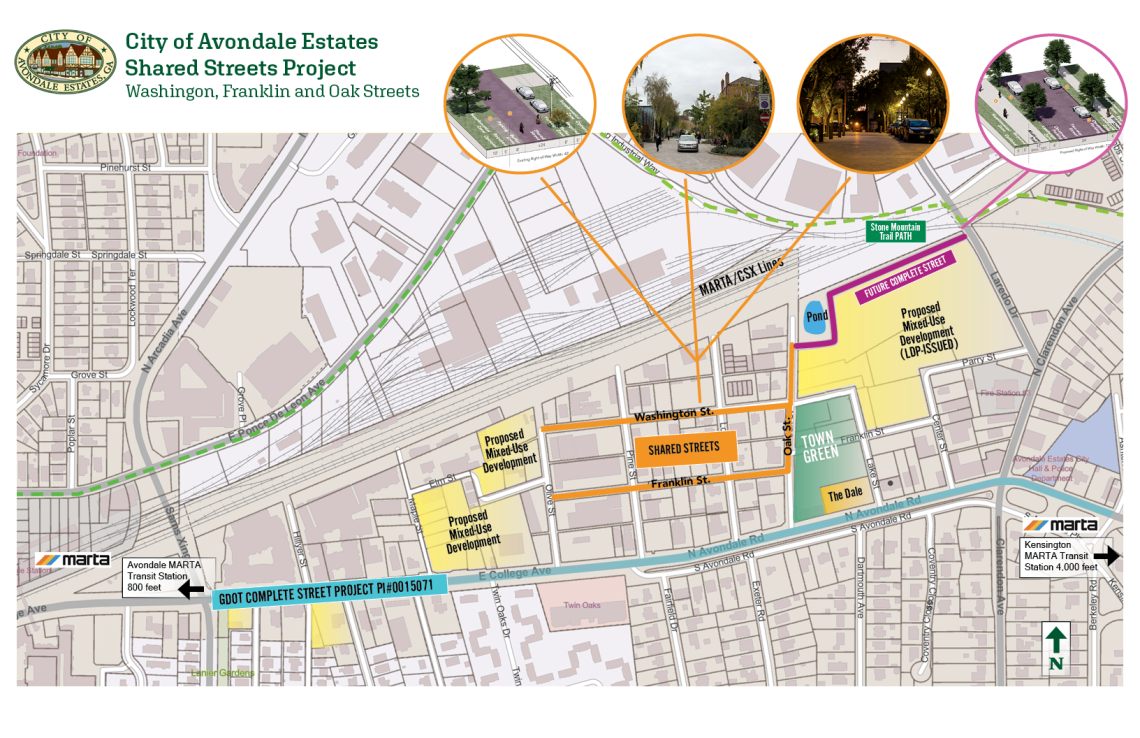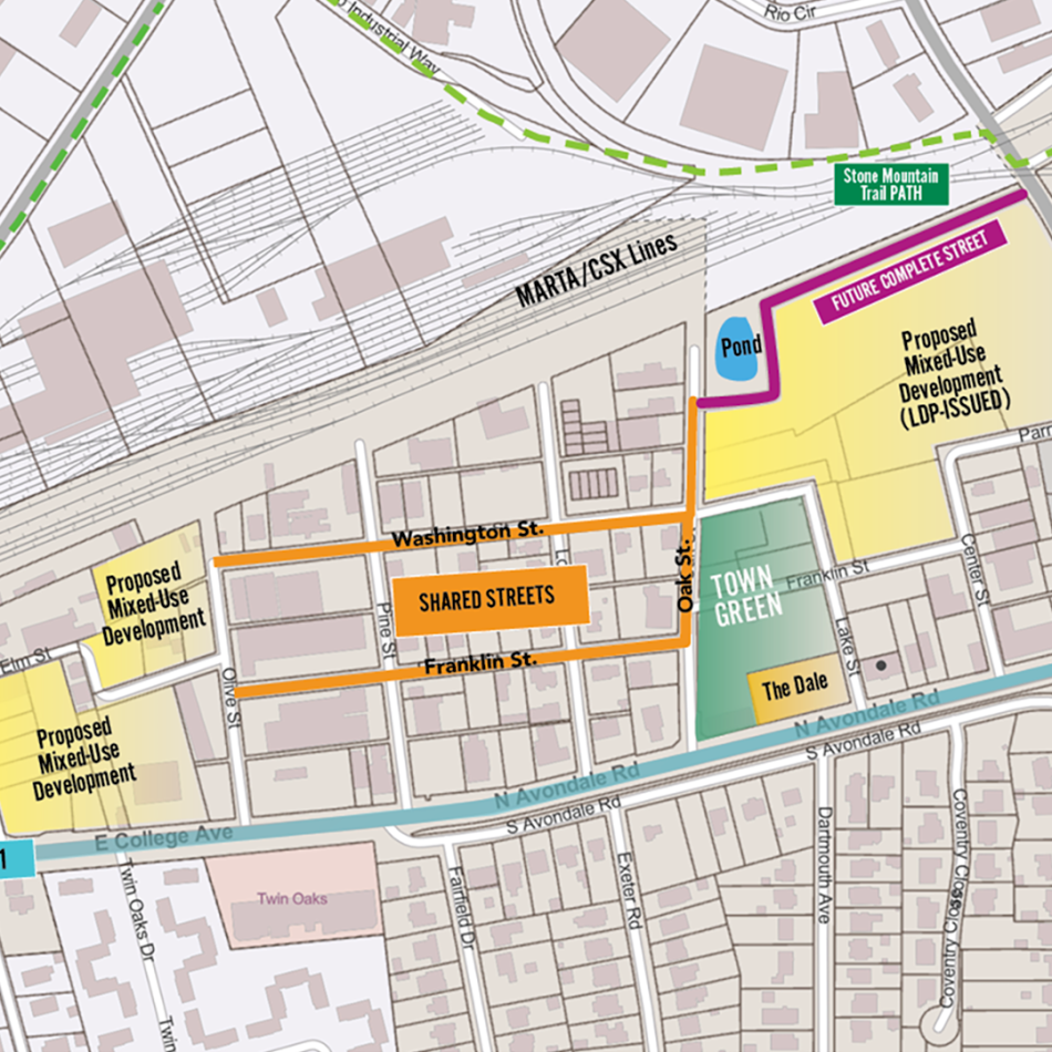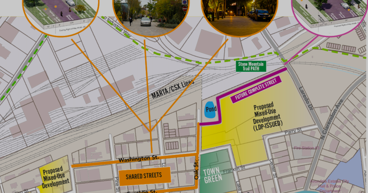 Closer look at shared streets plans and connectivity to the PATH Trail just to the north linking downtown Atlanta to Stone Mountain. City of Avondale Estates