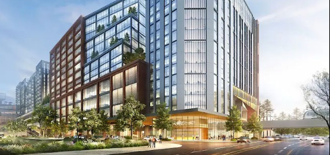 Rooftop amenities totaling 5,000 square feet would crown both buildings. Site plans also include 532 parking spaces and a new MARTA station house over train platforms, per Invest Atlanta.