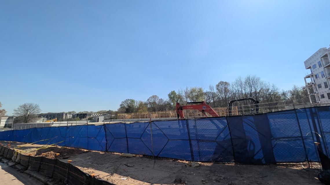 Where the section of the 840 Woodrow project nearest to the Beltline stood in late March. A new Beltline spur trail is planned on the opposite side of this block. Josh Green/Urbanize Atlanta