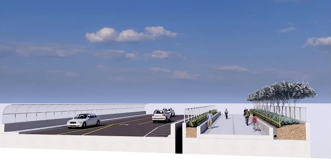 Looking north, plans for a new Beltline bridge with concrete barriers and buffers. Atlanta Beltline Inc.