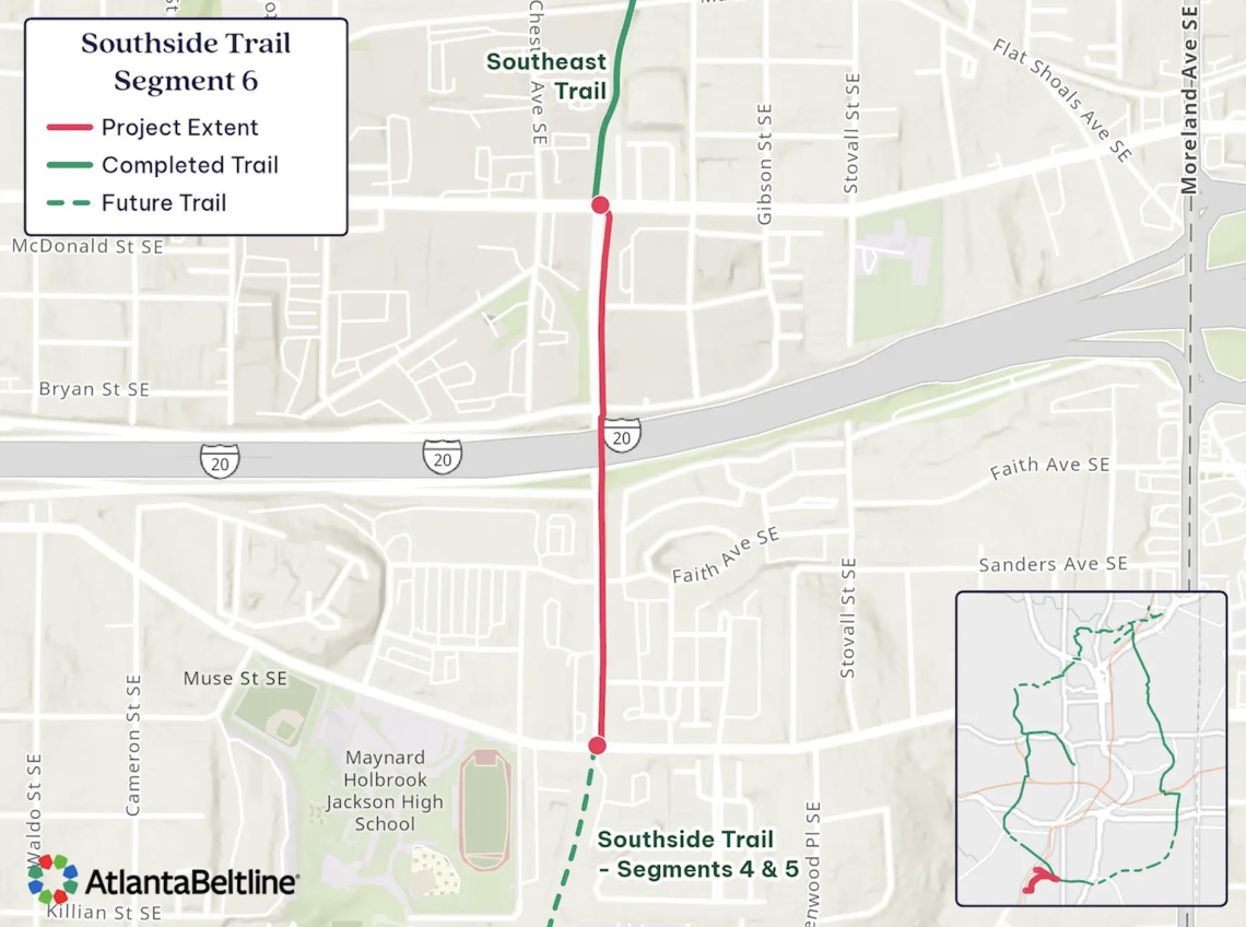 Scope of Southside Trail-Segment 6, east of downtown. Note: Trail changes north of Interstate 20 will be minimal, per officials. Atlanta Beltline Inc.