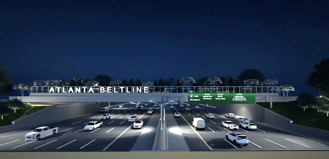 Another touch, as visible from the interstate below, with be lighted Beltline signage that echoes the look of Peachtree Street bridges in other parts of the city.