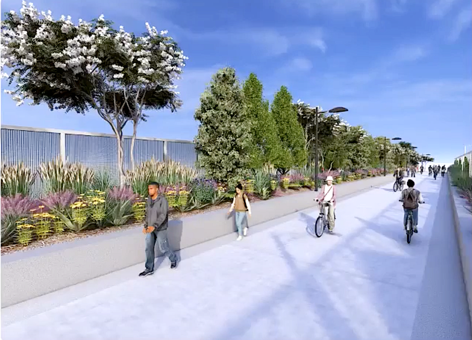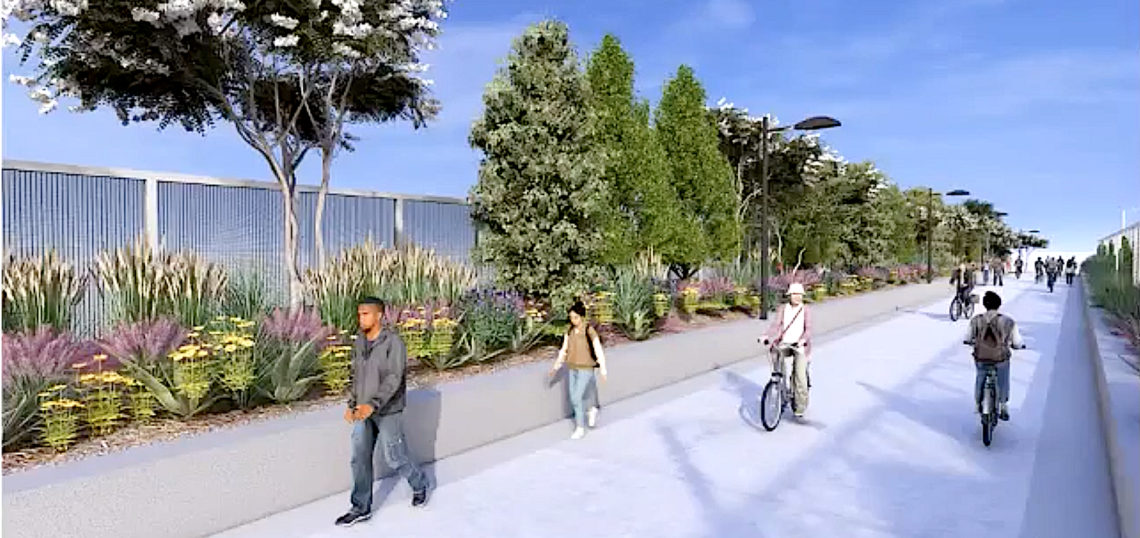 North of there, the locally funded, 14-foot pathway will weave onto a new bridge crossing over I-20 with plantings on both sides of the trial, two-foot buffers, stainless-steel fencing, and the largest trees possible for “a much more pleasant experience,” per Injaychock.