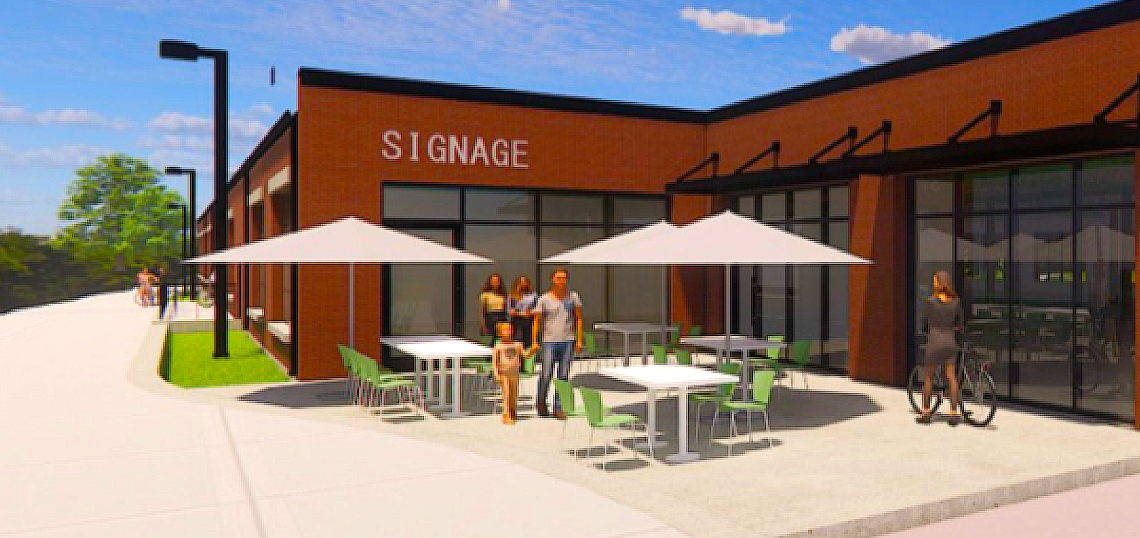 Planned Beltline-adjacent patio space at the 1500 Northside Drive conversion. Courtesy of The Atlantic Companies