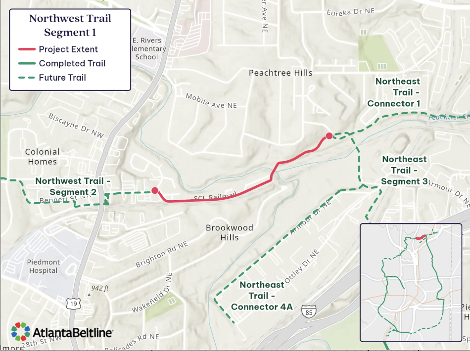 More broadly, the Northwest Trail will include five segments total, which will link with completed Beltline sections near Tanyard Creek Park and Bobby Jones Golf Course.