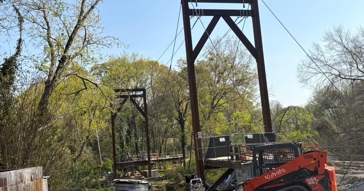 Segment 1 will run for .8 miles total, beginning at the western edge of the low-rise Peachtree Park Apartments and wending south along Peachtree Creek. (The cable-stay suspension bridge is situated basically next door to the apartments.) The Beltline’s initial timeline called for opening the segment in June, but the “unforeseen conditions” have pushed that back significantly—to 2027 or early 2028, according to a project update.