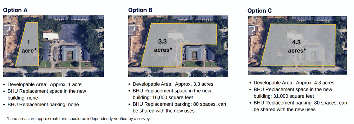 BHU intends to remain onsite in some capacity, though all current buildings could be scrapped for redevelopment in one scenario that includes all acreage.
