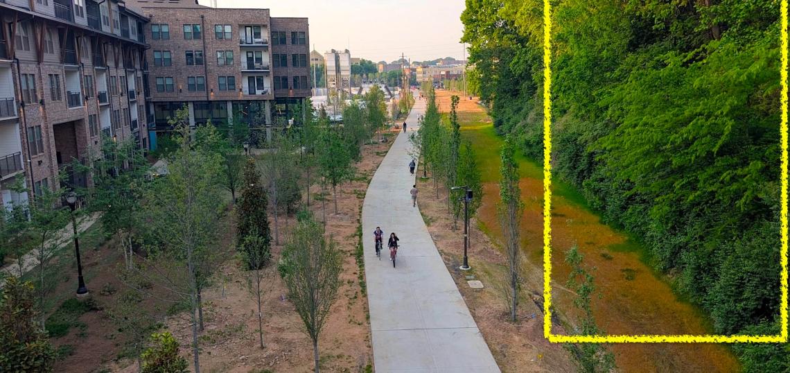Looking north toward Glenwood Park, the recently opened, 1.2-mile Southeast Trail segment in question, and where potential development would front it. Josh Green/Urbanize Atlanta