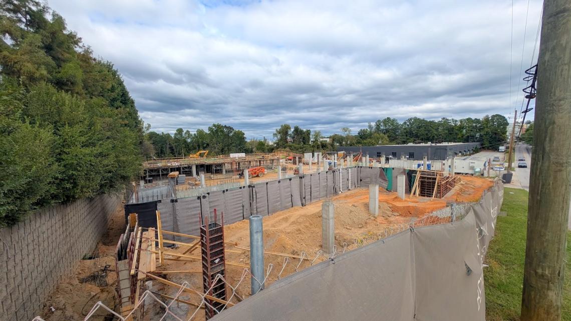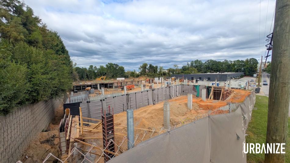 Beginnings of vertical construction on the 250-unit apartment and retail venture. Josh Green/Urbanize Atlanta