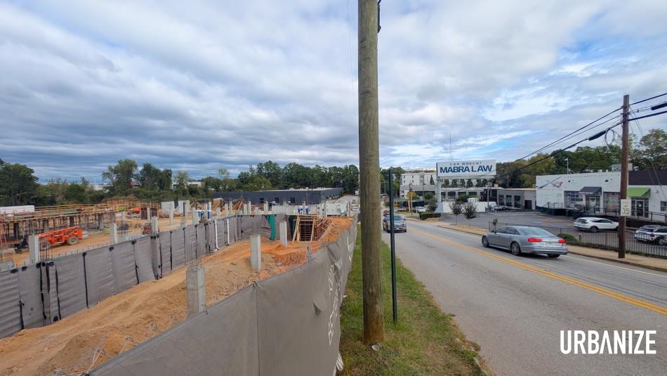 Where construction stands today at Novel Blandtown, with Huff Road at right. Josh Green/Urbanize Atlanta