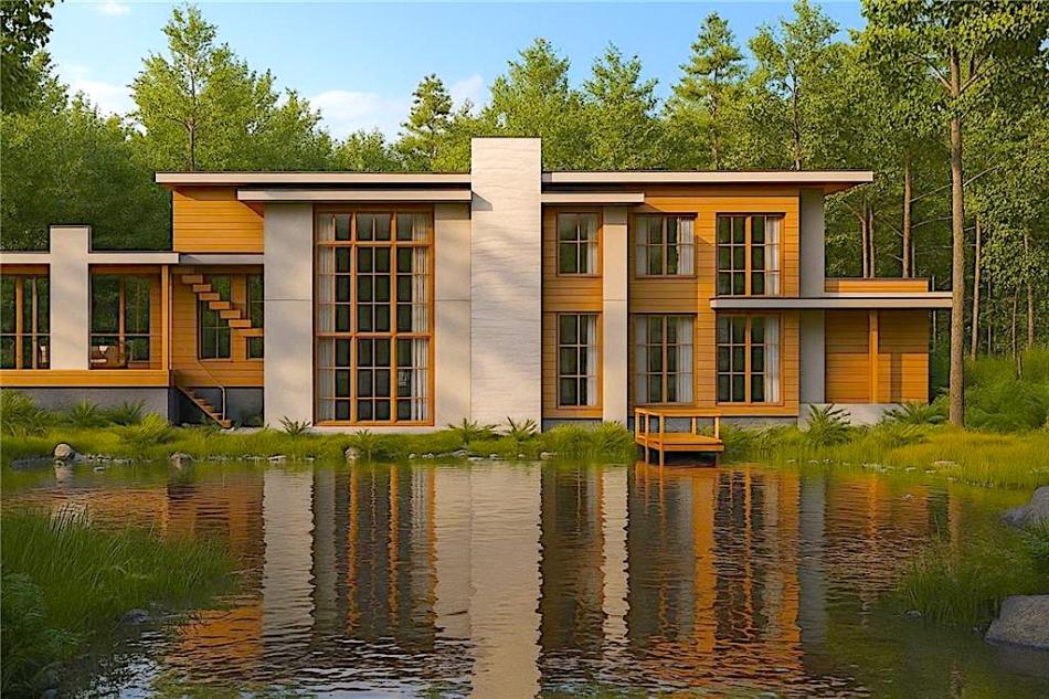 Each new house would span between 8,000 and 9,000 square feet, as fed by a gated new driveway and surrounded with “lush landscaping [and] mature hardwoods that enhance the natural woodland setting,” per Realco Brokers.
