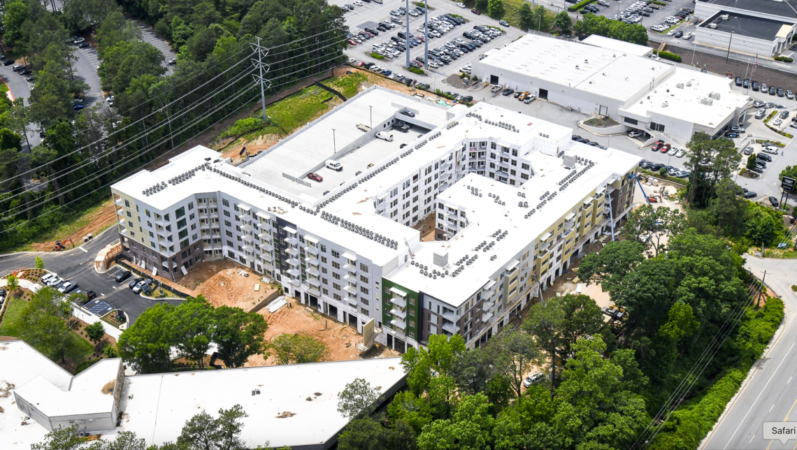 The 2400 Lake Park site is situated across the multi-lane highway from Steve Rayman Chevrolet and Ed Voyles Kia. Four-story office complex 2400 Lake Park operates next door and now shares a new 410-space parking deck with the future apartments.