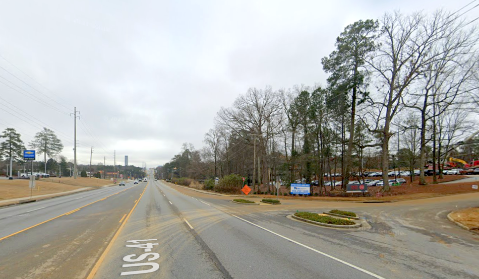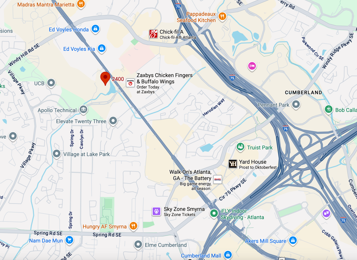 Lake Park's site location (at top left) in relation to The Battery Atlanta, Interstate 75, and other Cobb County landmarks. Google Maps