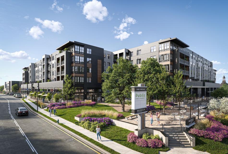 Overview of the five-story Magnolia project in the 1000 block of downtown Athens' Broad Street. Northwood Ravin; designs, NELSON Worldwide