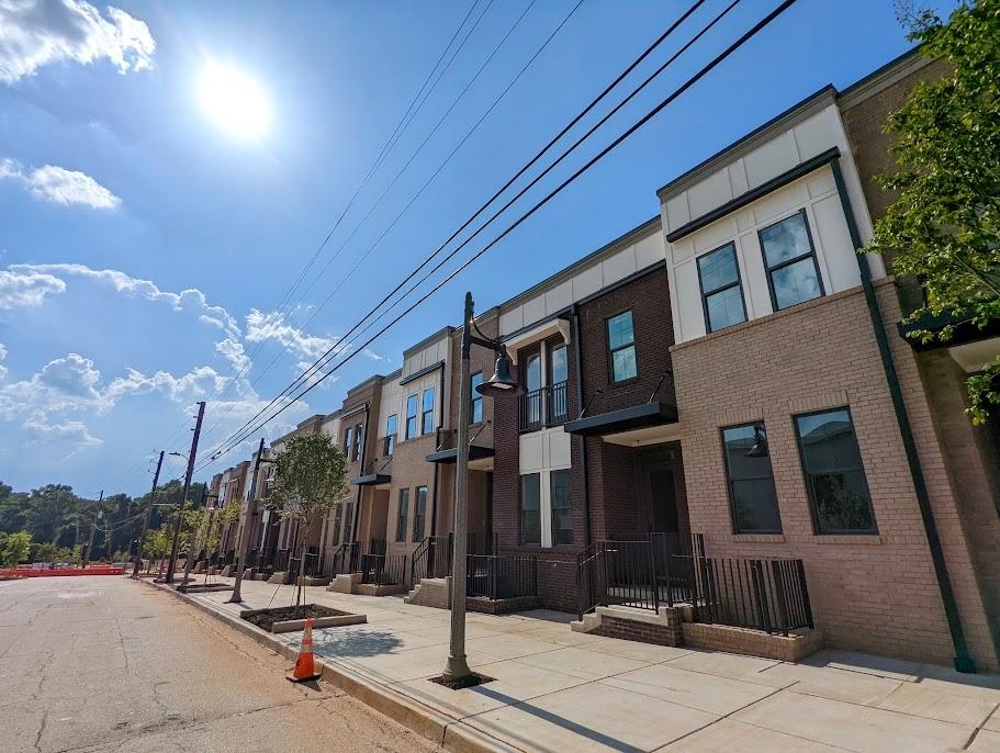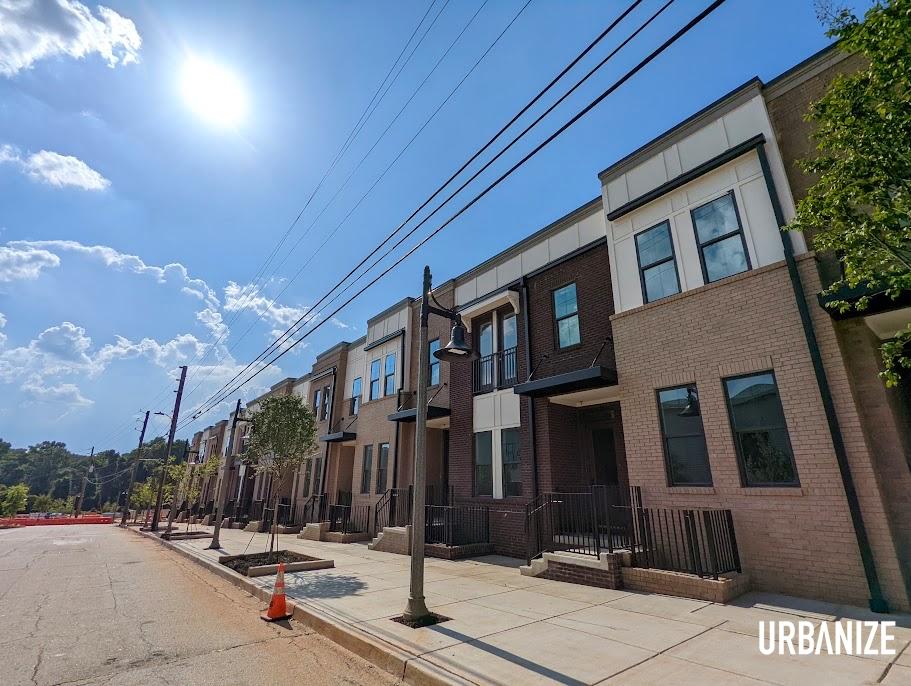 Traditional townhome facades along Talley Street, southeast of downtown Decatur, as seen in 2022. Josh Green/Urbanize Atlanta