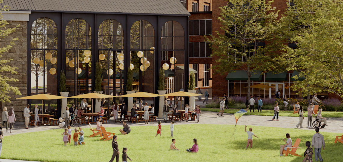 Plans call for 350 new homes—a mix of rentals and for-sale units—alongside a 120-room hotel. Up to a half-dozen restaurants and eight to 12 additional retail businesses are included, alongside greenspaces and the Jonquil Mile trail. No new office space is mentioned in plans.
