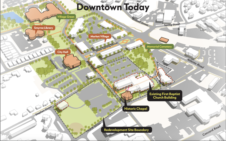 Founded nearly 140 years ago, Smyrna First Baptist Church plans to use the nearly $16-million buyout to develop a new 5.5-acre campus within walking distance of its current one along Atlanta Road.
