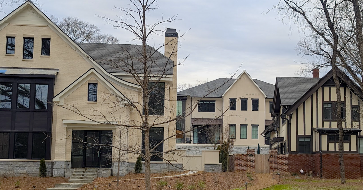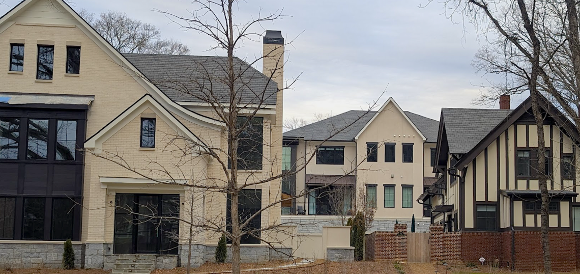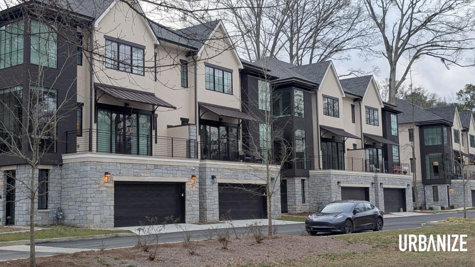 The final unsold property at the project (left) is a 5,054-square-foot manor house asking $2.79 million, with a pending contract. Josh Green/Urbanize Atlanta