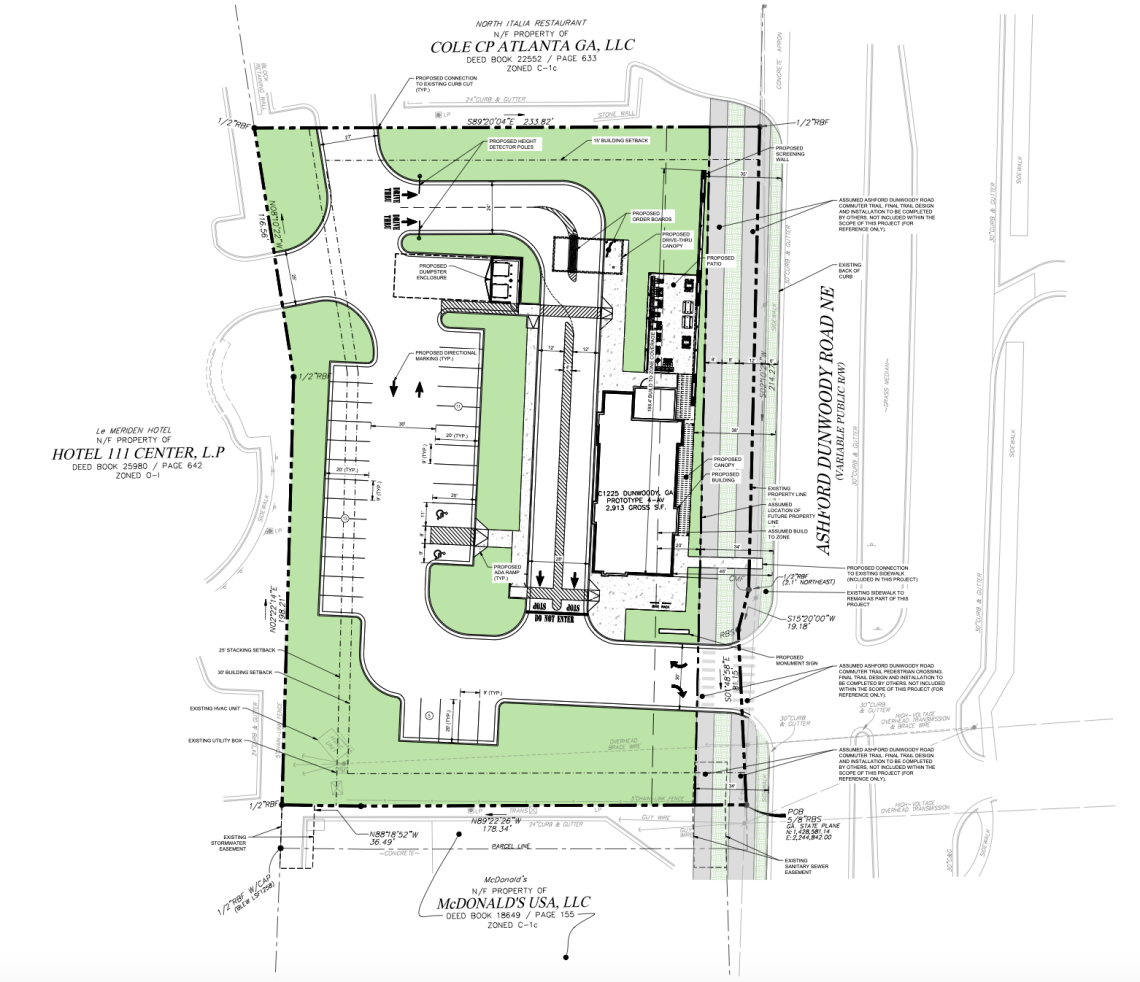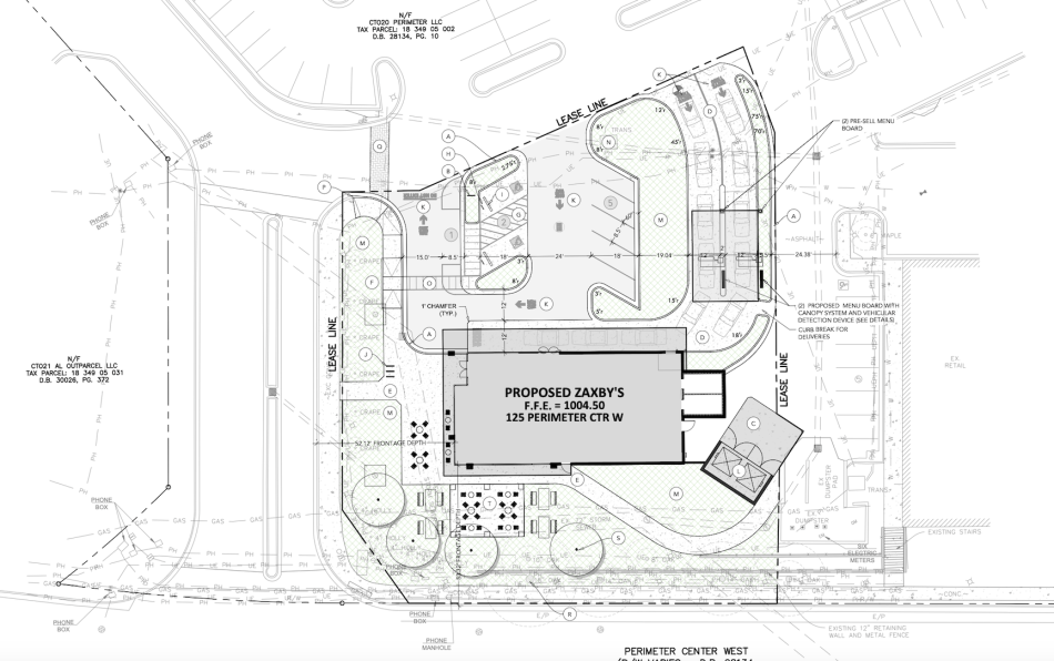 Overview of Zaxby's site plans at 125 Perimeter Center West. Courtesy of City of Dunwoody/Zaxby's application/A&R Engineering