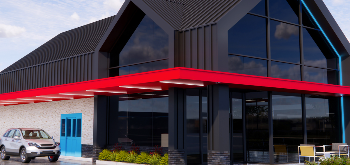Zaxby’s plans called for a unique, modern-style flagship location with outdoor seating and drive-thru lanes capable of channeling through 18 cars at once.