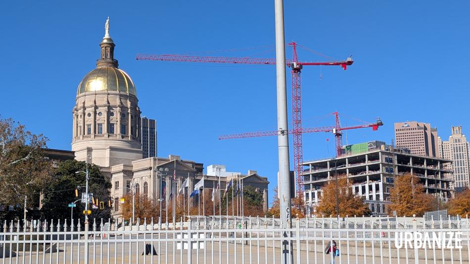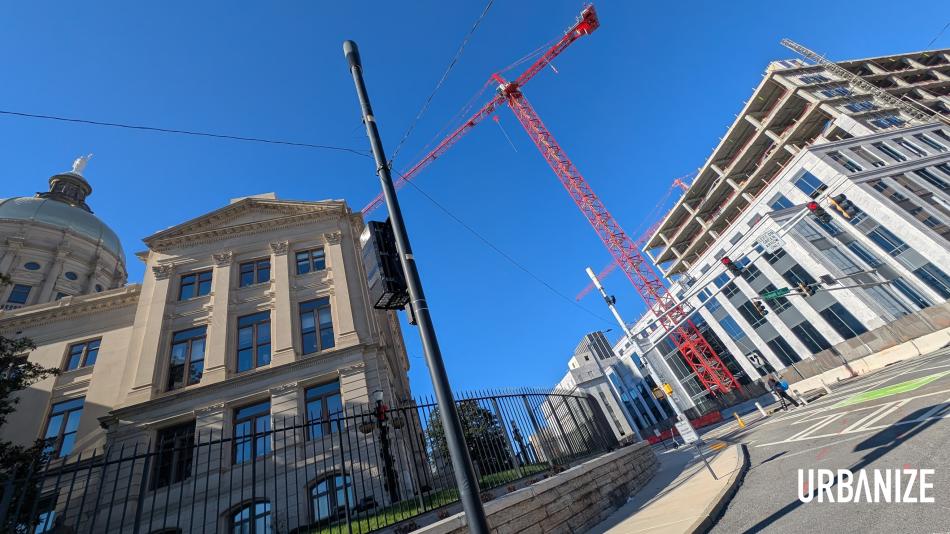 The topped-out office expansion project along Martin Luther King Jr. Drive in relation to the Georgia Capitol Building, as seen on Saturday. Josh Green/Urbanize Atlanta