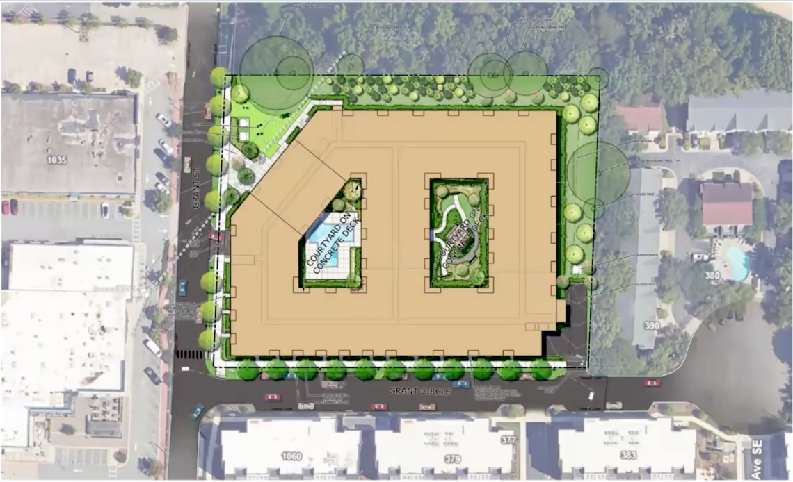 Trammell Crow Residential has proposed an infill multifamily building at 1030 and 1040 Grant St. NE that would inject blocks near The Beacon (situated directly to the west) with nearly 300 new residences within a short walk of Beltline entrances.