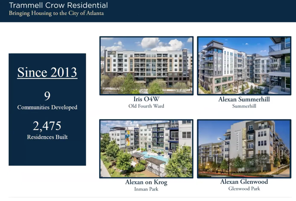 Examples of TCR's recent intown work, as shown during a January GPNA presentation. Trammell Crow Residential; courtesy of GPNA