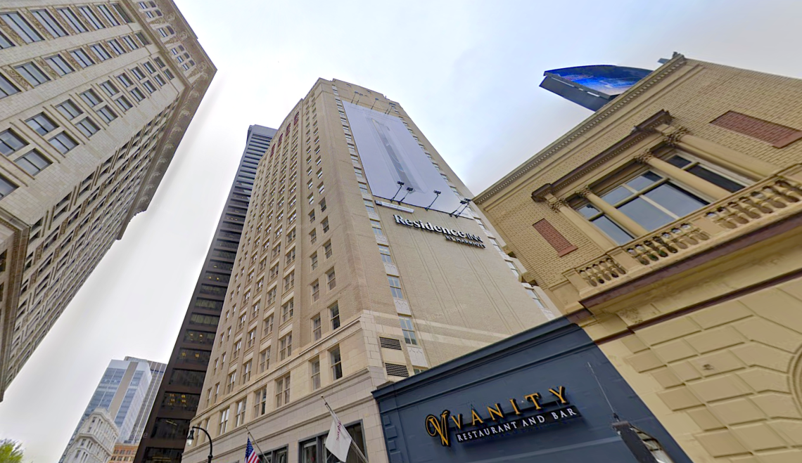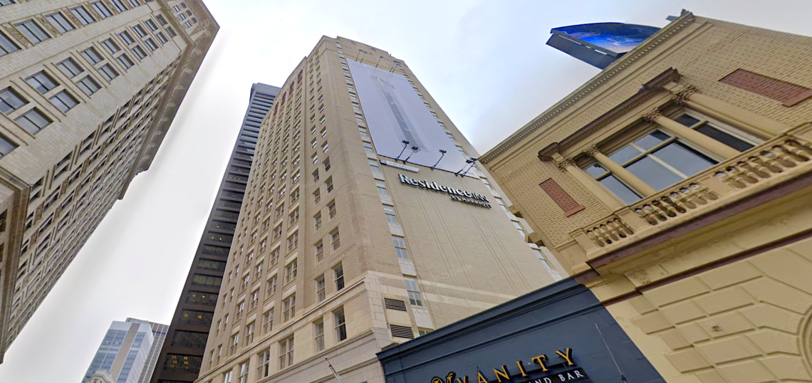 The building was renovated in 2015 and suffered some fire damages last summer but has continued to operate as a hotel. Current rates start at $156 nightly for a queen suite.