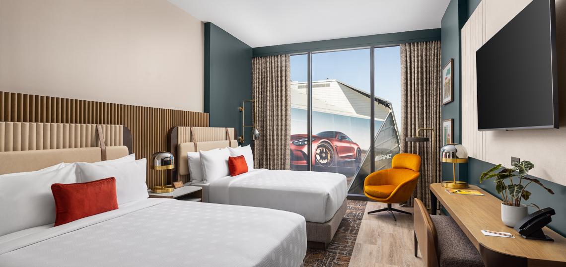 Standing at 70 Centennial Olympic Park Drive, across the street from Mercedes-Benz Stadium, the property includes Southern-inspired brasserie Zephyr and its watering hole, Bar Z, just off the lobby. (A “resort-style terrace lounge” called Bless Your Heart, along with an outdoor pool and event lawn, The Green, will debut at the start of the 2026 spring season, officials recently announced.) Other facets include roughly 15,000 square feet of event space—more than half of that an upscale ballroom.