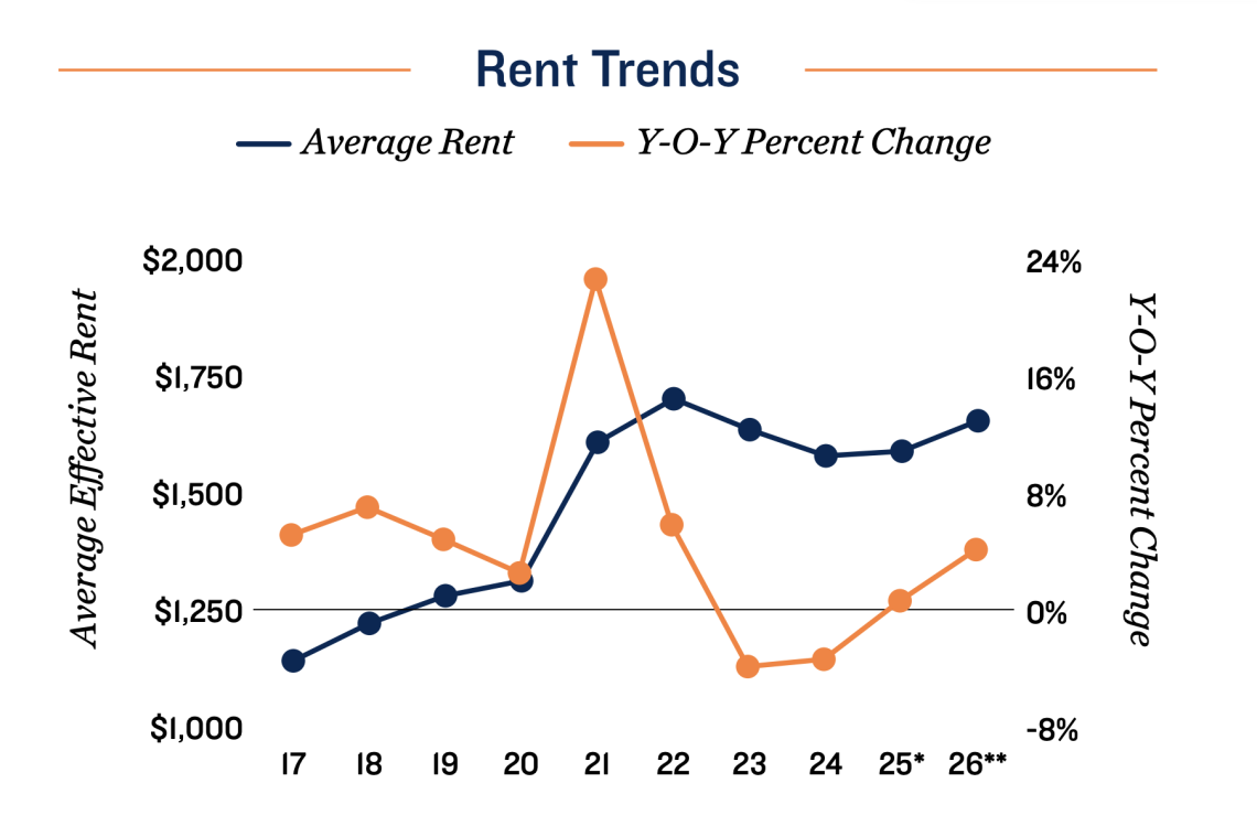 • Average prices for metro Atlanta apartment properties were “among the lowest of any primary metro last year, a dynamic that should attract investors from outside Georgia to area listings in 2026.”