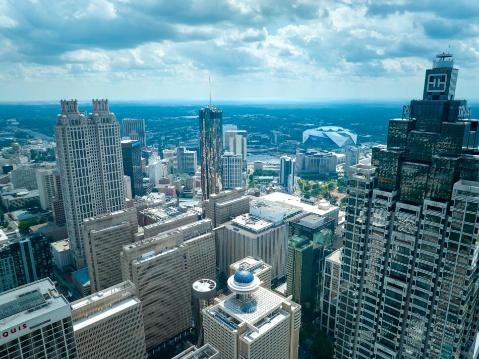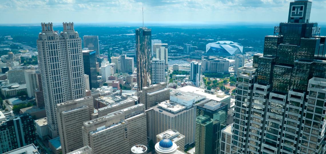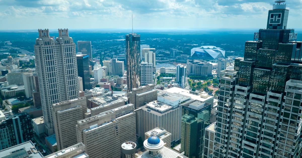 Downtown Atlanta's skyline in summer 2024, when Centennial Yards was much less vertical than today near Mercedes-Benz Stadium. Christopher V Jones/Shutterstock