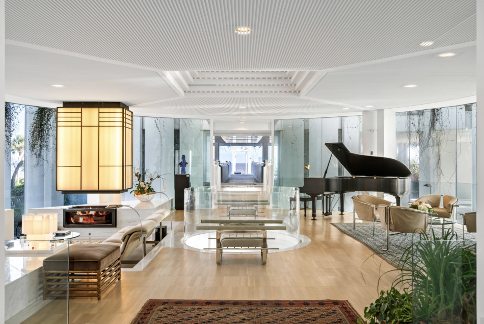 “[It] transcends the conventional, standing as a harmonious interplay between architectural form and… natural grandeur,” reads the listing. “Portman’s genius is evident in the meticulous orchestration of space, light, and materiality.”