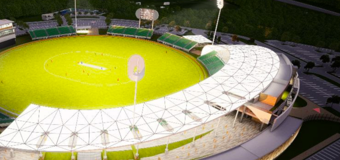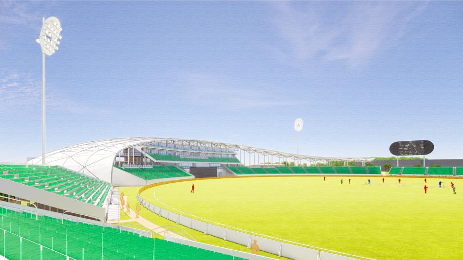 Fresh rendering showing seating and other aspects of the under-construction, 10,500-seat facility. Renderings courtesy of LaGrange Cricket Stadium, TVS